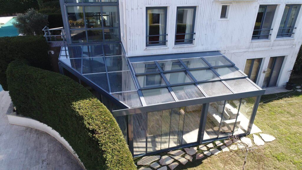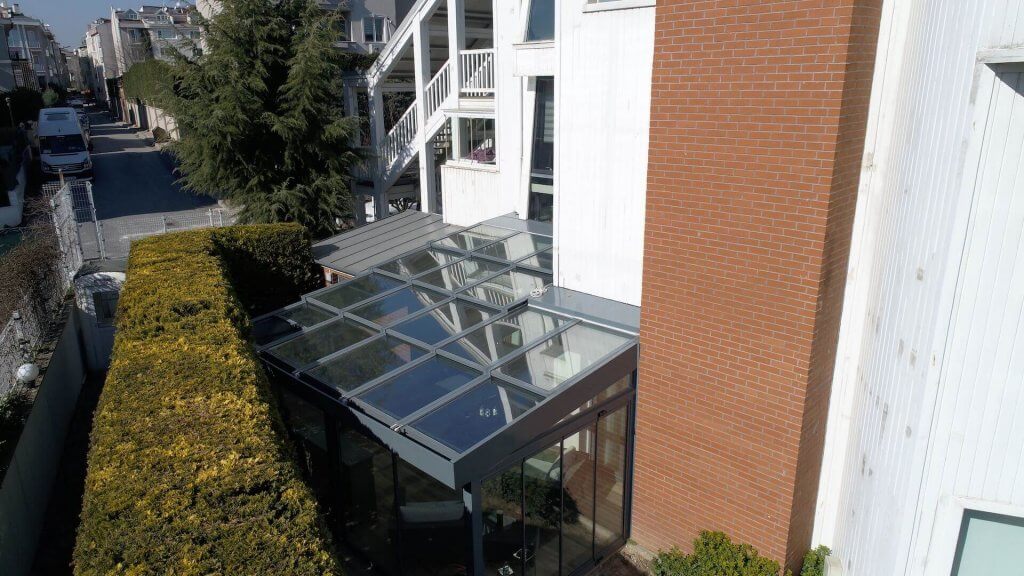 Akıllı Cam Çatı Sistemi açık alanlarda çelik konstrüksiyon üzerine alüminyum raylar entegre edilerek kurulan, uzaktan kumanda ile açılıp kapatılabilen, konfor(62/44 cool plus) ısı cam kombinasyonu ile sizi olumsuz hava şartlarından korumak için mekan ölçülerinize göre özel projelendirilerek üretilen hareketli çatı sistemidir.